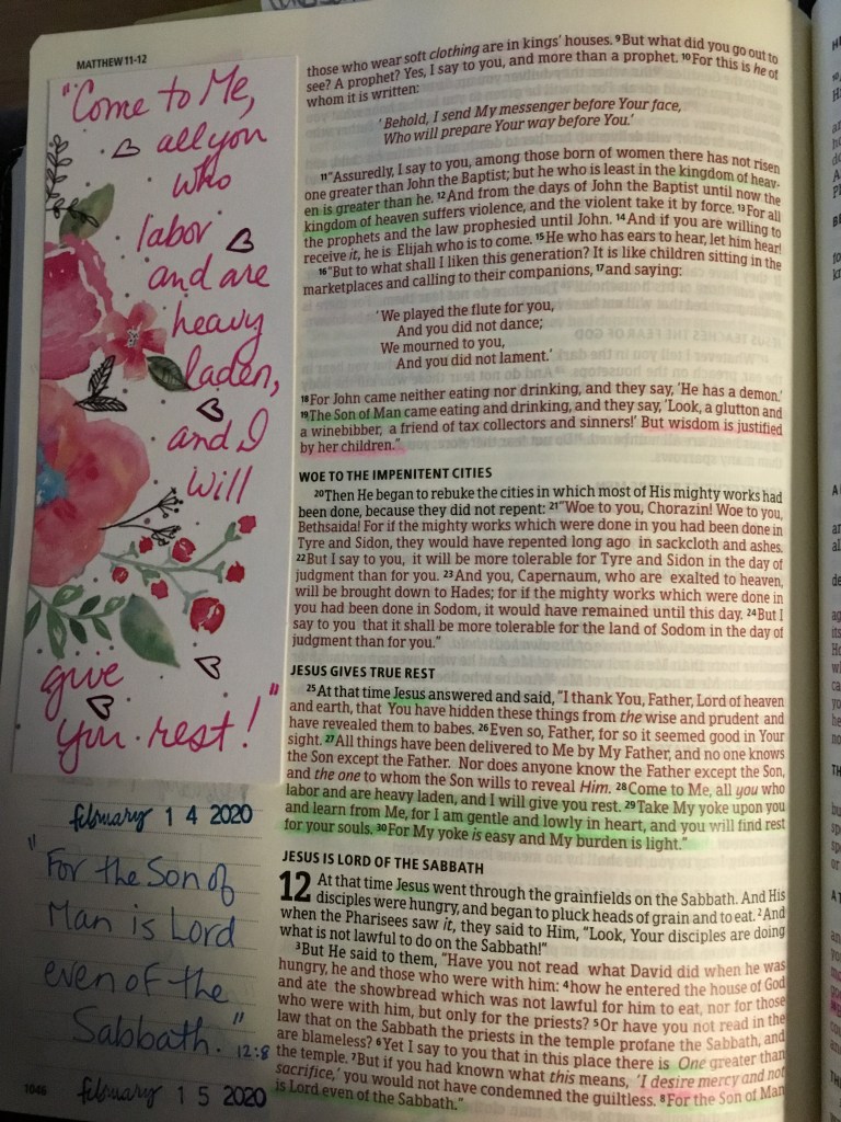 “Come to Me, all you who labor and are heavy laden, and I will give you rest. Take My yoke upon you and learn from Me, for I am gentle and lowly in heart, and you will find rest for your souls. For My yoke is easy and My burden is light.” Matthew 11:28-30.